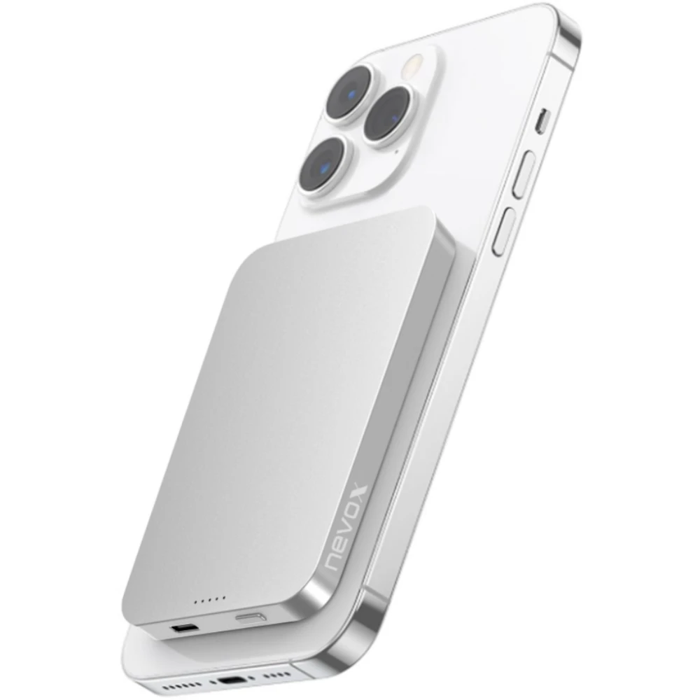 Nevox Wireless Magnetic Powerbank 5000mah kompitabel zu Magsafe Silber Weiß